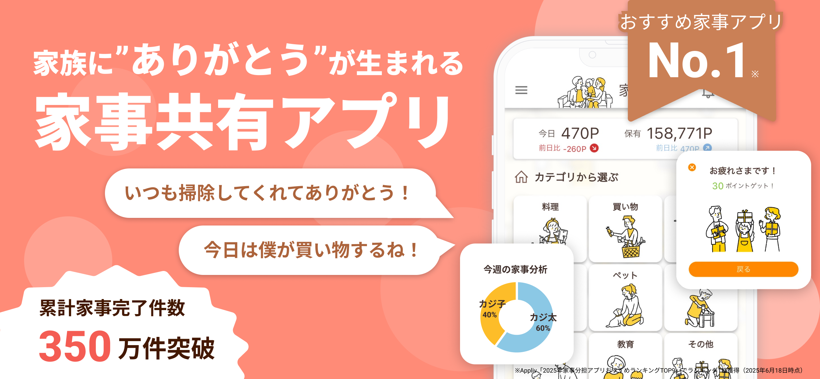 面倒なポイント管理には、家事分担アプリ「CAJICO」がおすすめです。